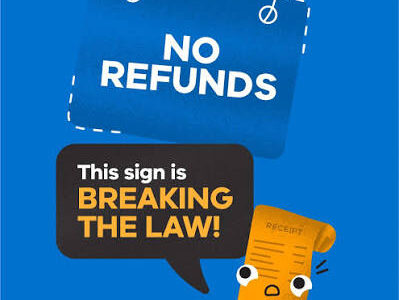 By Ross Moyo Zimbabwe’s government has declared “no refund” signs displayed by some retail outlets, popularly known as “runners”, and other shops illegal, ...