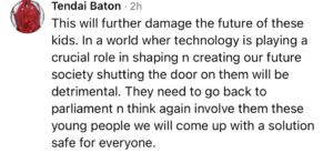 Minister of Information Communication Technology, Hon. Tatenda Mavetera revealed the proposal during an address in Karoi on Sunday, explaining that the policy is aimed at creating a safer digital environment for Zimbabwe’s children.