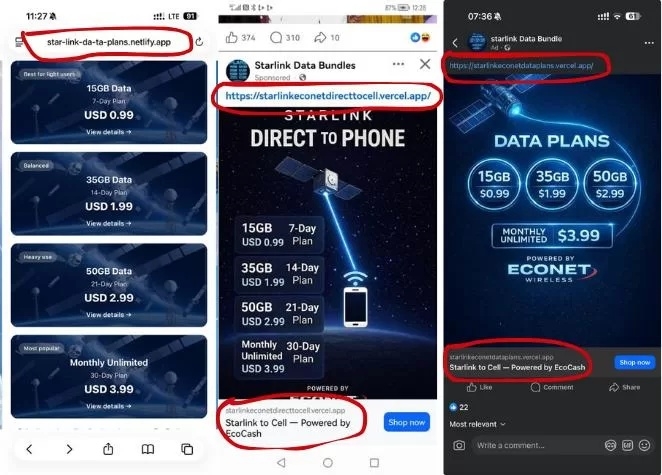 These sites target current consumer needs, such as starlink special data: Offers of 15GB for under US$1 or unlimited monthly data for $4, instant Kashagi loans Promises of loans up to US$5,000 with automatic approval for everyone