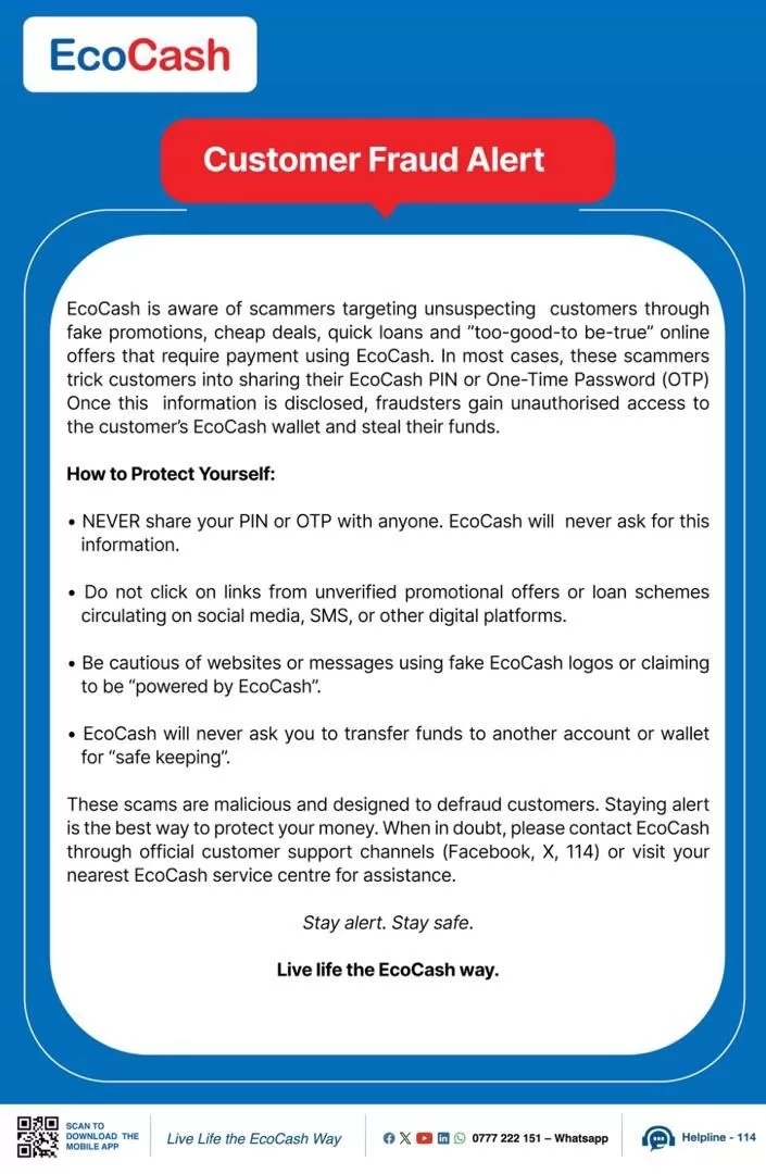 If a deal looks too good to be true, it almost certainly is. Before entering your details anywhere, stop and ask a trusted friend or contact EcoCash directly. In an era of human hacking, your caution is your only true firewall.