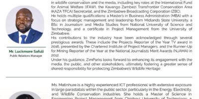 Luckmore Safuli Takes Helm as ZimParks Public Relations Manager, Set to Revolutionize Wildlife Communication