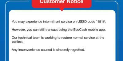 EcoCash Alerts Customers: Intermittent *151# Service Issues – Switch to Mobile App for Seamless Transactions 18 hours ago