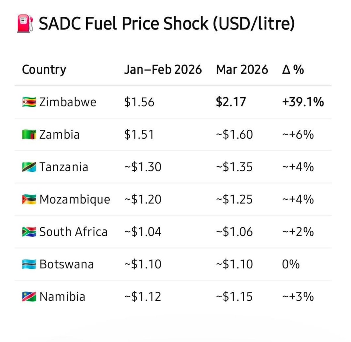 Effectively this has ranked Zimbabwe as the country with the most expensive fuel in sub-Saharan Africa, still making it worse is the fact that the governemnt states that this is fuel price for reserve oil, not direct import affected by cost.